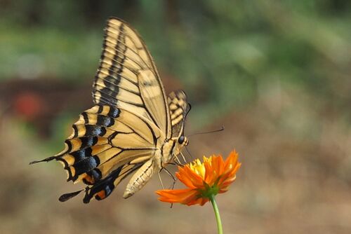キアゲハが忙しそうに花から花へ飛び回っています。同じ花でも開く方向が異なっているため器用に自分の身体の体制を調節しながら花に接近しています。空中でホバリングしながら吸蜜することもできるようです。また、キアゲハは、次の花に移るとき、前進して…
